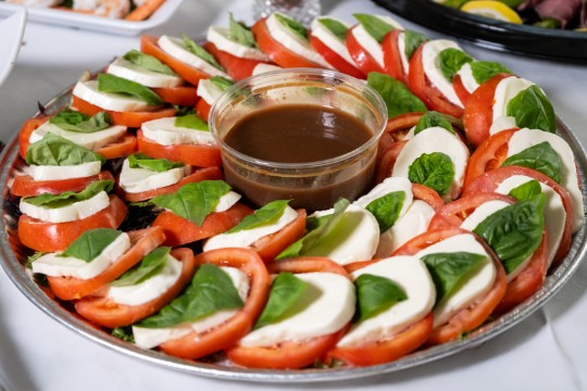 Our fresh vegetable platter featuring cucumbers, summer squash, carrots, celery, broccoli, cauliflower, cherry tomatoes, and pepper strips served with ranch dressing.